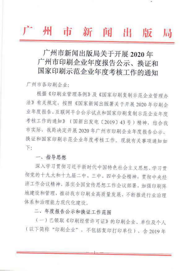 关于开展2020年广州市印刷企业年度报告公示和换证工作的通知